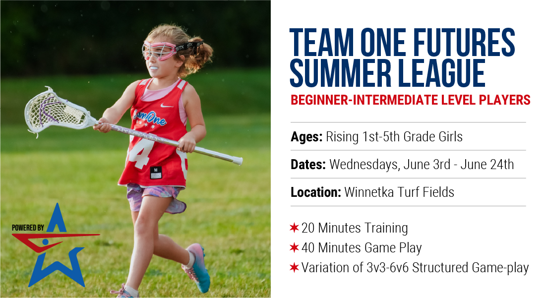 The Team ONE Futures Summer League is a program for rising 1st-5th Graders that is focused on developing fundamentals, competition, fun, and playing FAST! Continue the Spring Lacrosse Season with some competitive summer FUN!